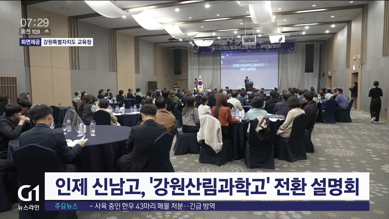 인제 신남고등학교의 가칭 '강원산림과학고' 전환을 위한 지역 주민설명회가 어제(26일) 인제 스피디움 그랜드볼룸홀에서 열렸습니다.