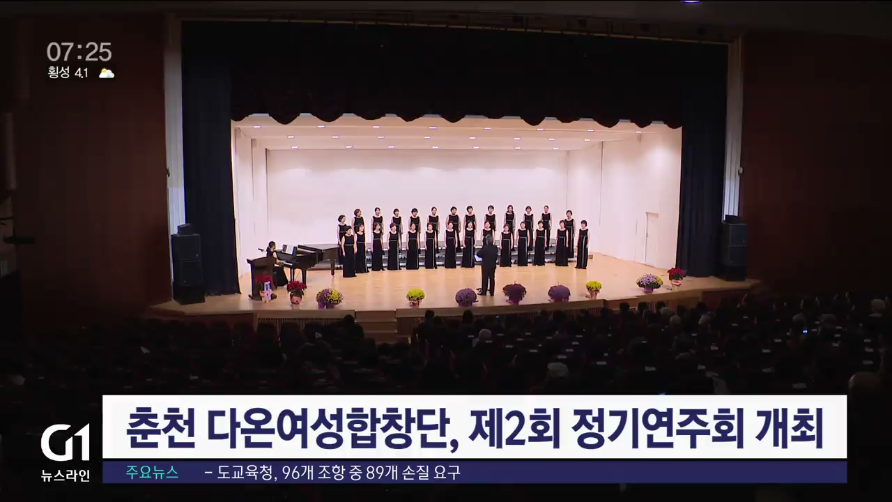 지난해 10월 창단한 춘천 다온여성합창단의 '제2회 정기연주회'가 어제(29일) 춘천 한림대 일송아트홀에서 열렸습니다.