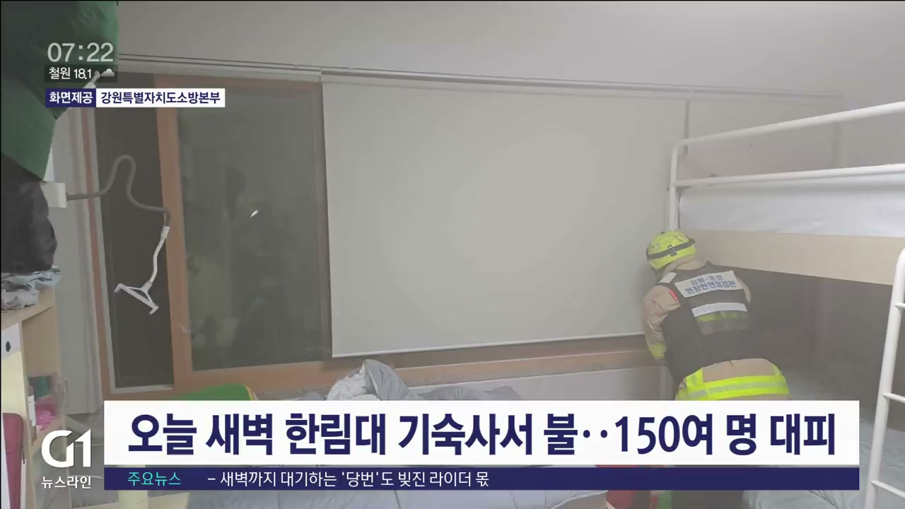오늘 오전 3시 48분쯤 춘천시 후평동 한림대 기숙사에서 불이 나 학생 150여 명이 대피했습니다.