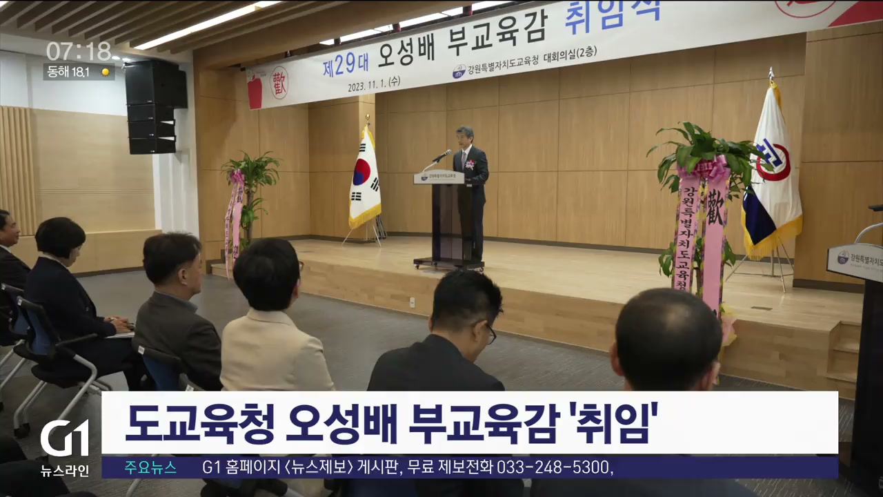 강원특별자치도교육청 오성배 부교육감 취임식이 어제(1일) 도교육청 대회의실에서 열렸습니다.