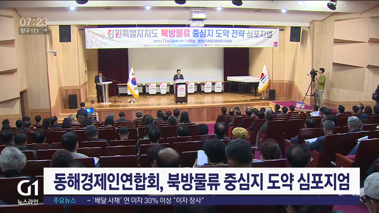 동해경제인연합회가 어제(2일) '강원특별자치도 북방물류 중심지 도약 전략'을 주제로 심포지엄을 개최했습니다.