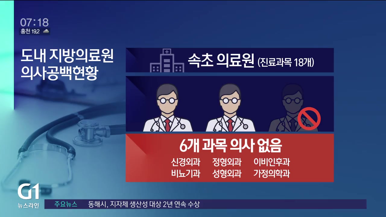 /속초 의료원의 경우 18개 진료 과목 중 신경외과와 정형외과 등 6개 과목이 휴진 상태입니다.