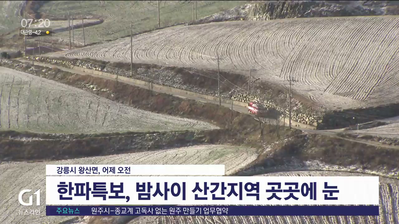 영하권으로 떨어진 날씨에 밤사이 도내 산간지역 곳곳에는 눈이 내렸습니다.