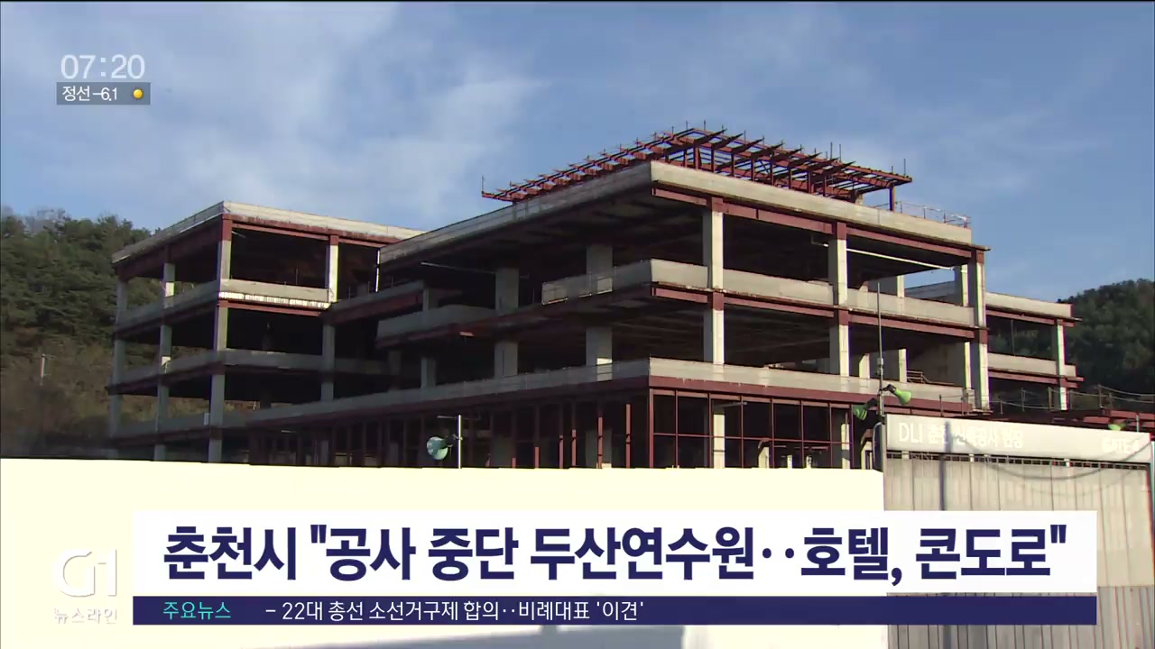 춘천시 "공사 중단 두산연수원..호텔,콘도로"