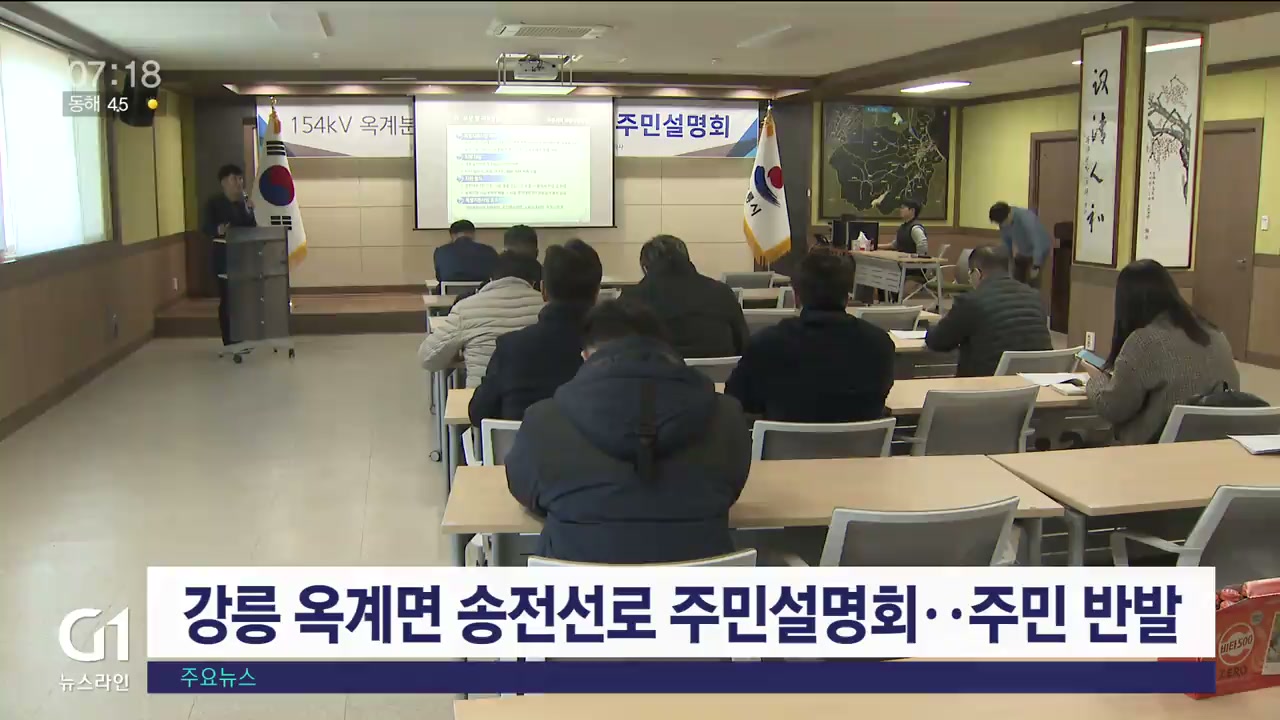 한국전력공사가 강릉시 옥계면 일대에 추진 중인 송전선로 건설과 관련한 주민설명회를 열었지만, 주민들의 반발로 20여분 만에 종료됐습니다.