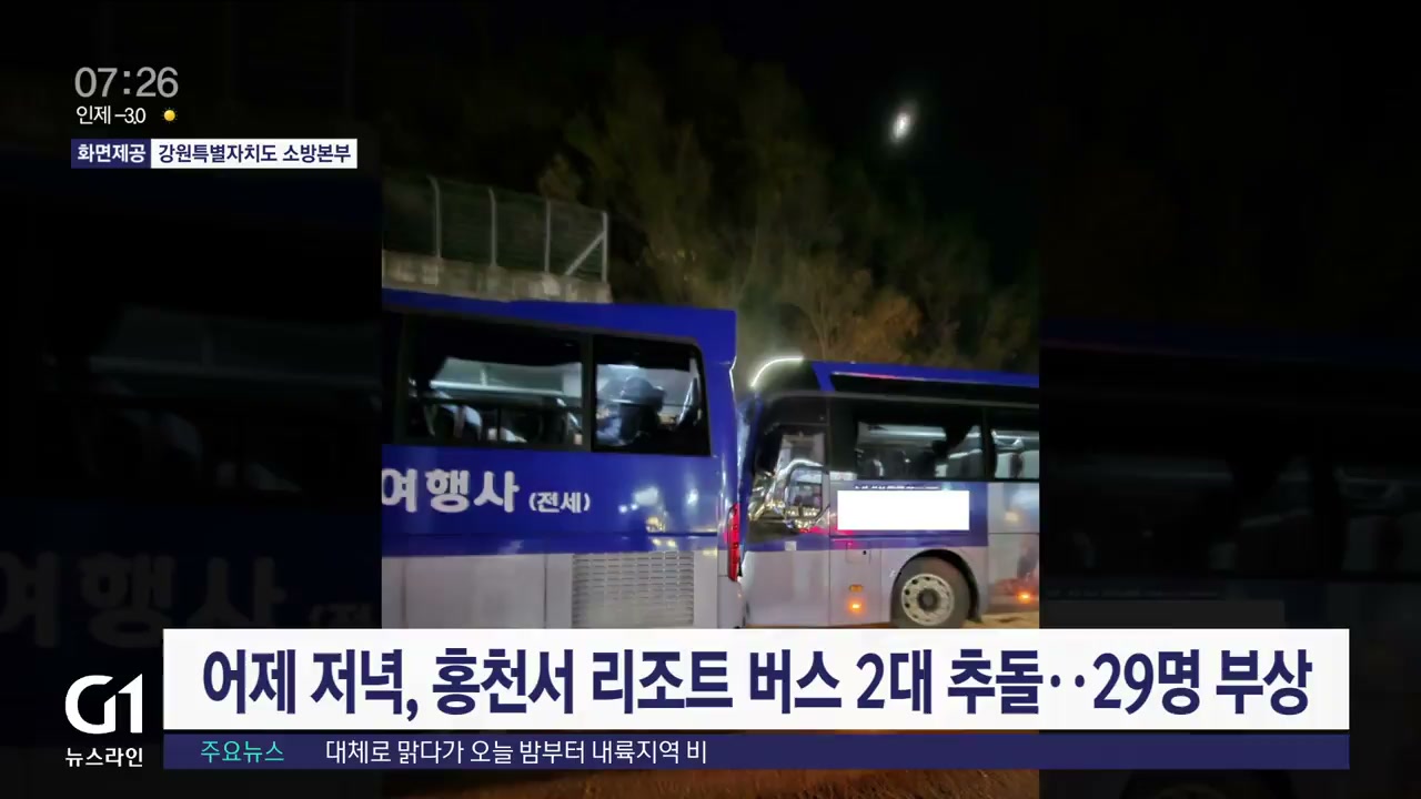 어제 저녁, 홍천서 리조트 버스 2대 추돌..29명 부상