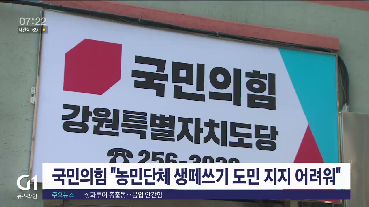 강원특별자치도의회가 농업기술원 예산 대폭 삭감에 항의하며 관련 예산안 심사를 거부한 가운데 국민의힘 도당이 "농민단체의 생떼쓰기는 도민의 지지를 받기 어렵다"고 비판했습니다.