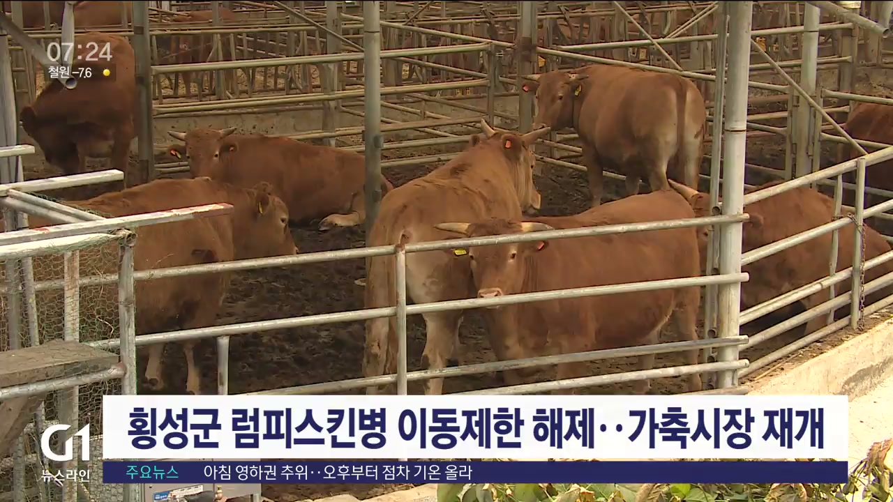 횡성군 럼피스킨병 이동 해제..가축시장 재개장