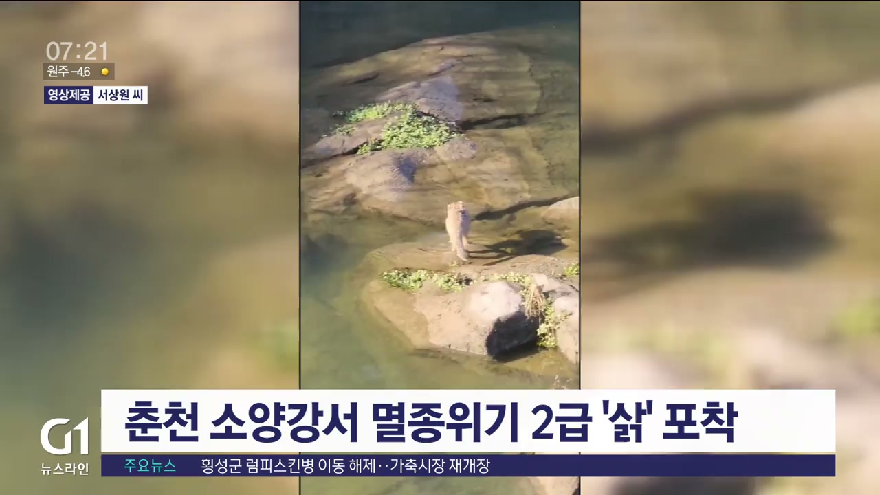 춘천시 우두산 아래 소양강에서 멸종위기 야생동물 2급인 삵이 포착됐습니다.