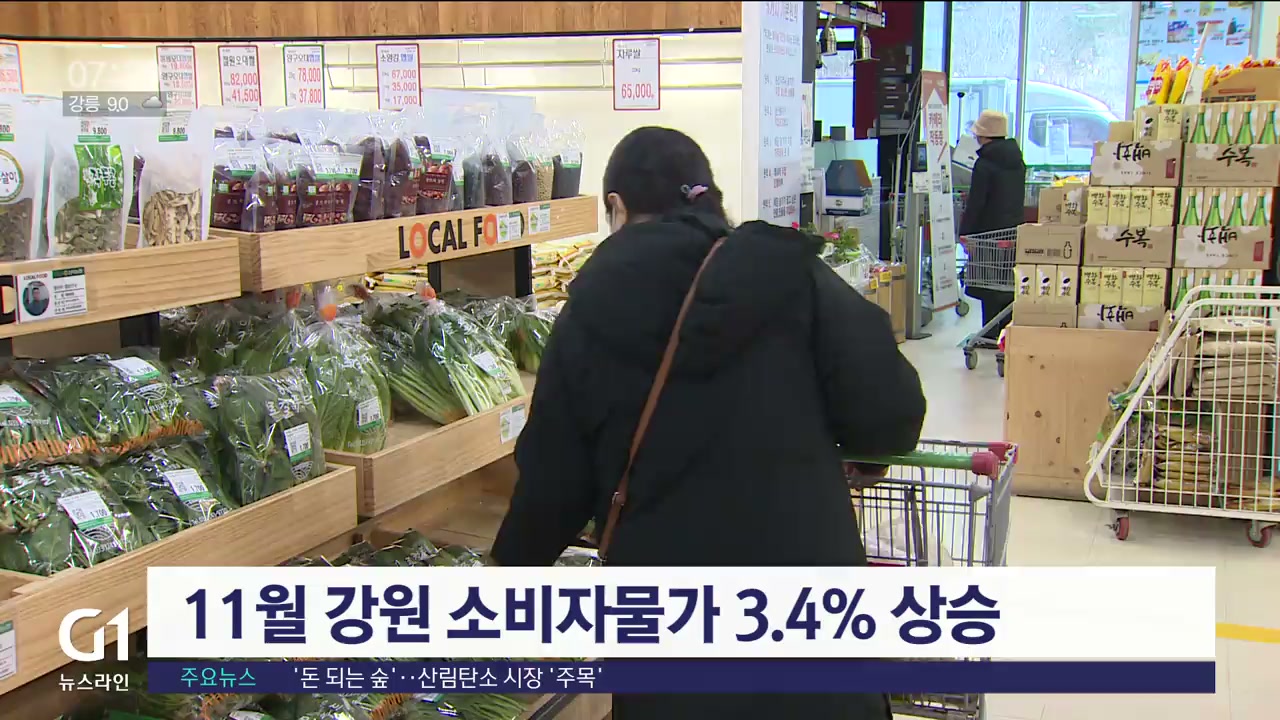 11월 강원 소비자물가 3.4% 상승