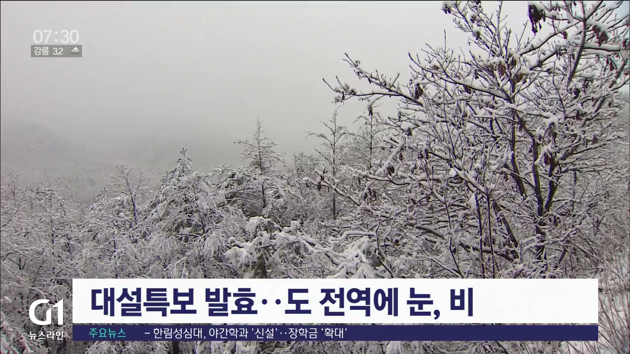 강원지방기상청은 산간지역을 중심으로 대설 특보가 내려졌다며 눈 피해가 없도록 안전사고에 각별히 유의해줄 것을 당부했습니다.