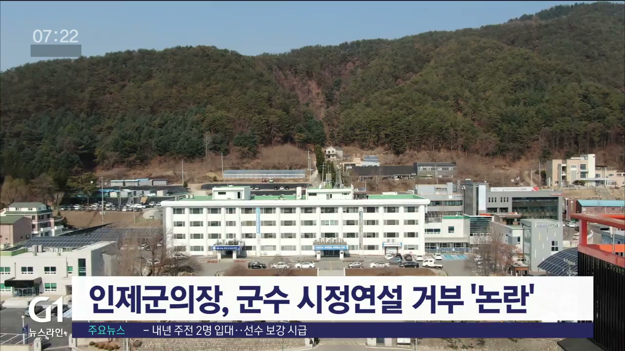 인제군의회가 의장 직권으로 군수의 시정연설을 거부해 논란이 일고 있습니다.