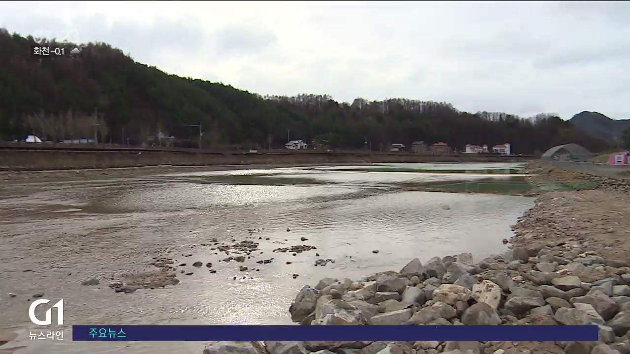 꽝꽝 얼어있어야 할 하천에 거센 물살만 흐릅니다.