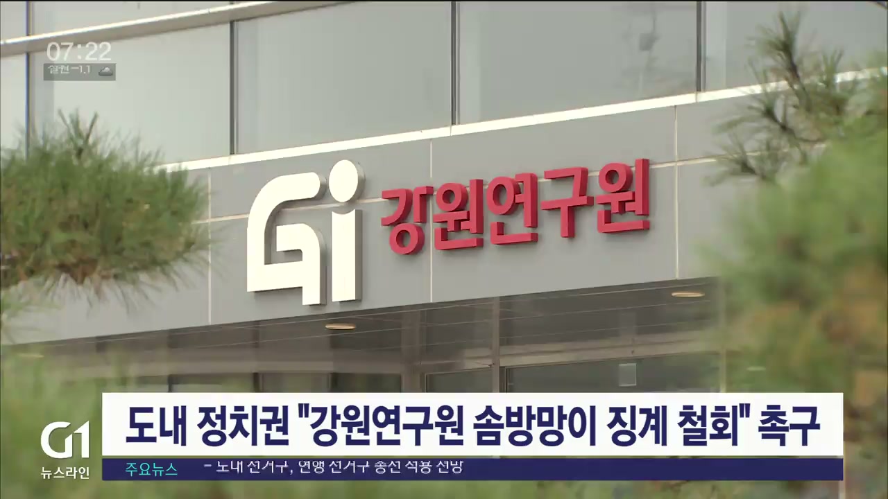 <속보>도내 정치권 "강원연구원 솜방망이 징계 철회"