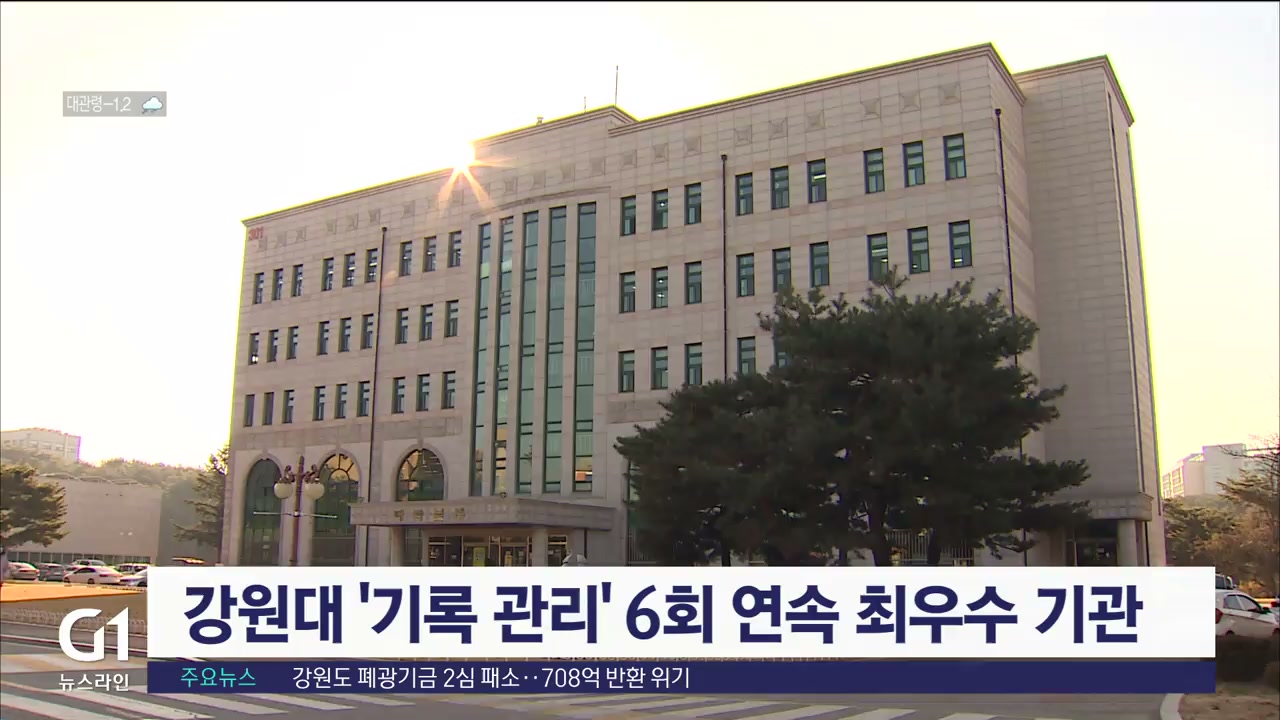 행정안전부 소속 국가기록원이 실시한 '2022년도 기록 관리 기관 평가'에서 강원대학교가 전국 국·공립대학 가운데 유일하게 6회 연속 최우수 기관에 선정됐습니다.