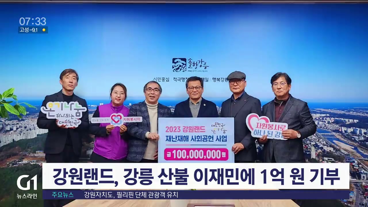 강원랜드는 최근 강릉시청을 방문해, 지난 4월 대형 산불로 피해를 입은 강릉지역 이재민에 1억 원을 기부했다고 밝혔습니다.
