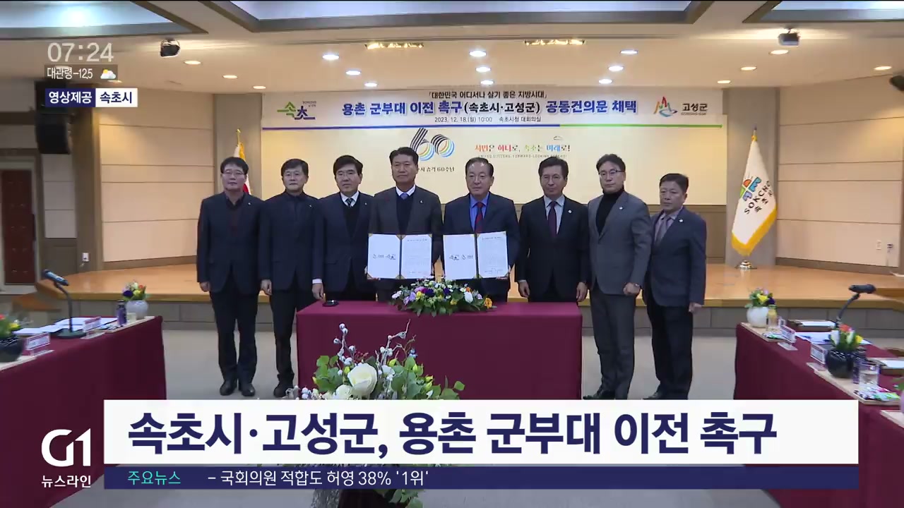 양 지자체는 어제(18일) 속초시청 대회의실에서 고성군 용촌리 군부대 이전을 촉구하는 공동 건의문을 채택했습니다.