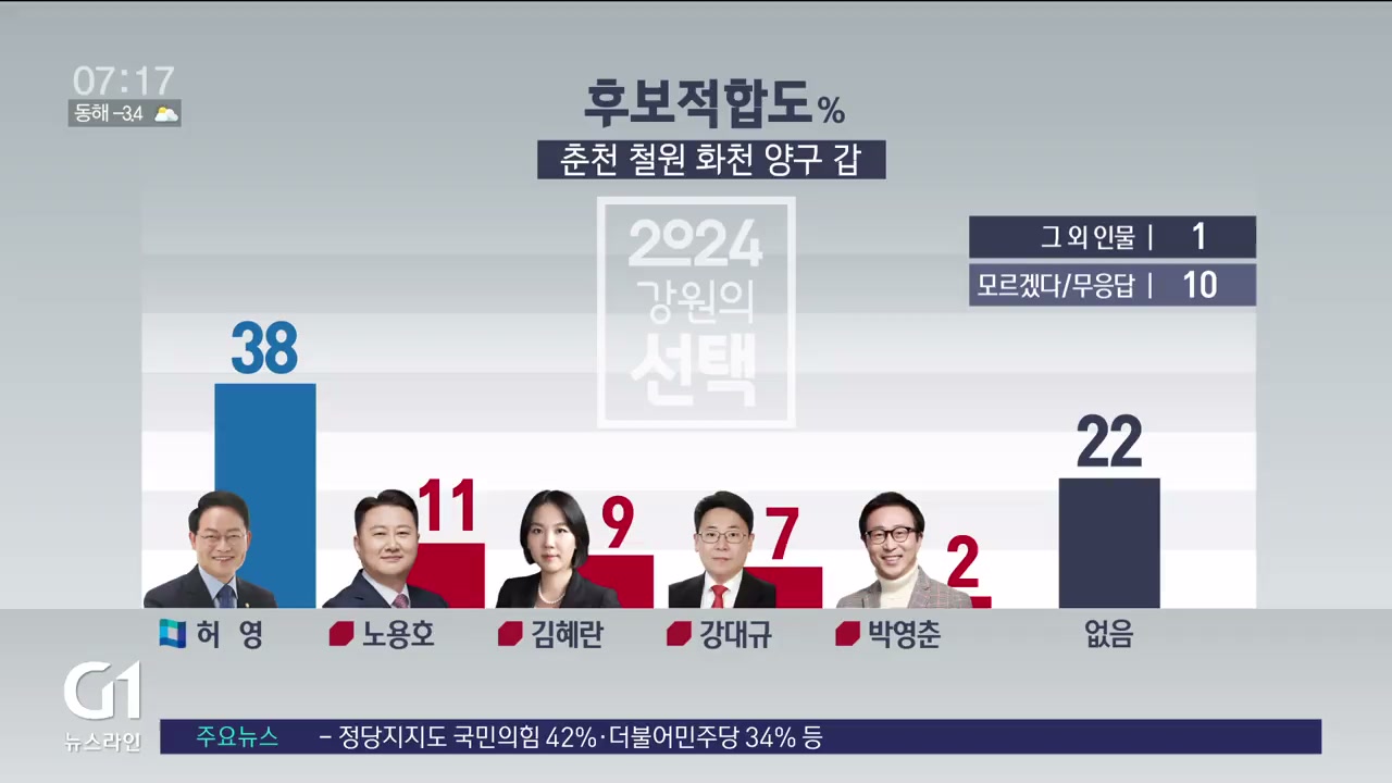 <총선여론조사> 춘천·철원·화천·양구 갑 허영 '선두'
