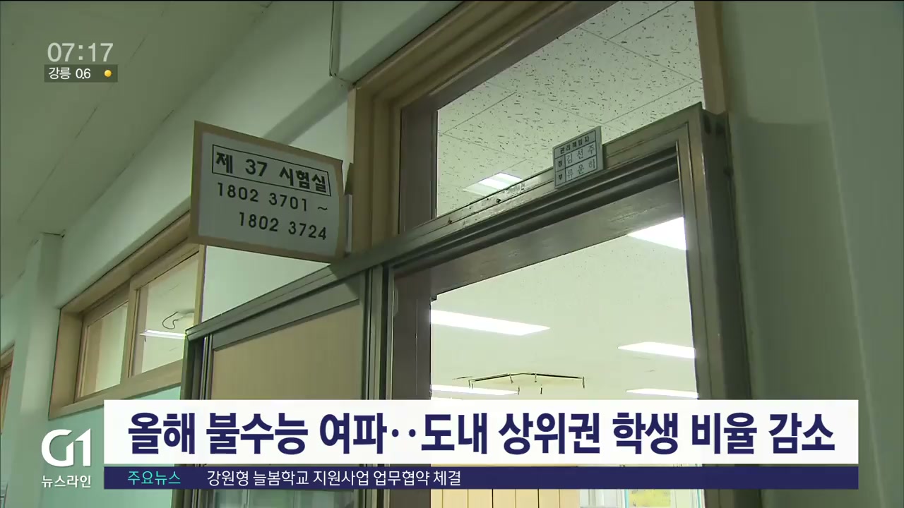 2024학년도 대학수학능력시험이 어렵게 출제되면서 강원자치도 내 상위권 학생 비율이 줄어든 것으로 나타났습니다.