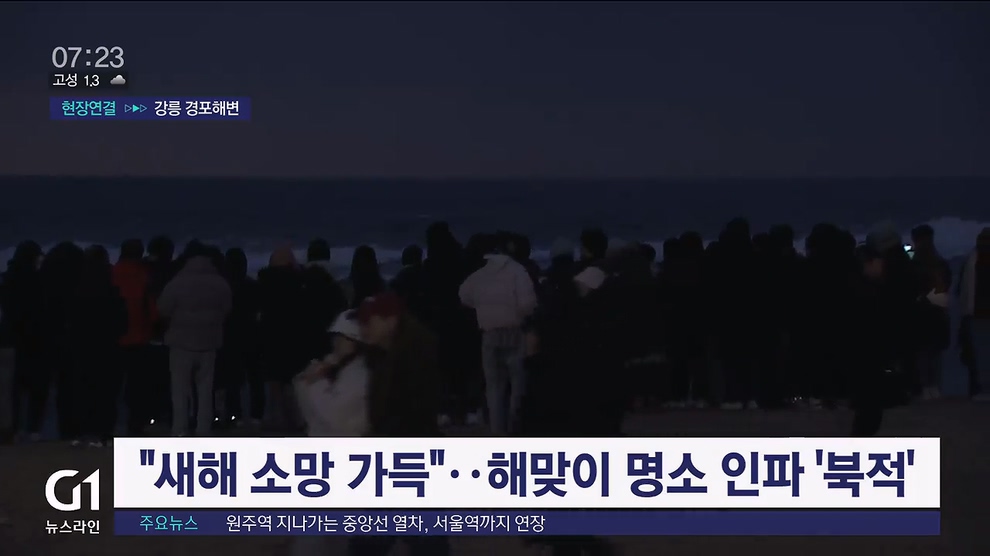 제 뒤로 보이시는 것처럼 이른 새벽 부터 새해 일출을 보기 위해 많은 인파가 몰렸습니다.
