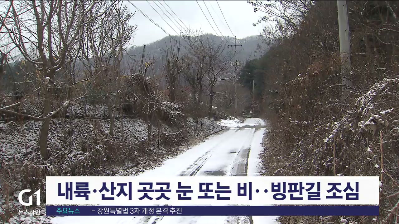 내륙·산지 곳곳 눈 또는 비..빙판길 조심