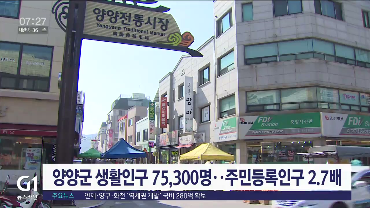 양양군 생활인구 75,300명..주민등록인구 2.7배