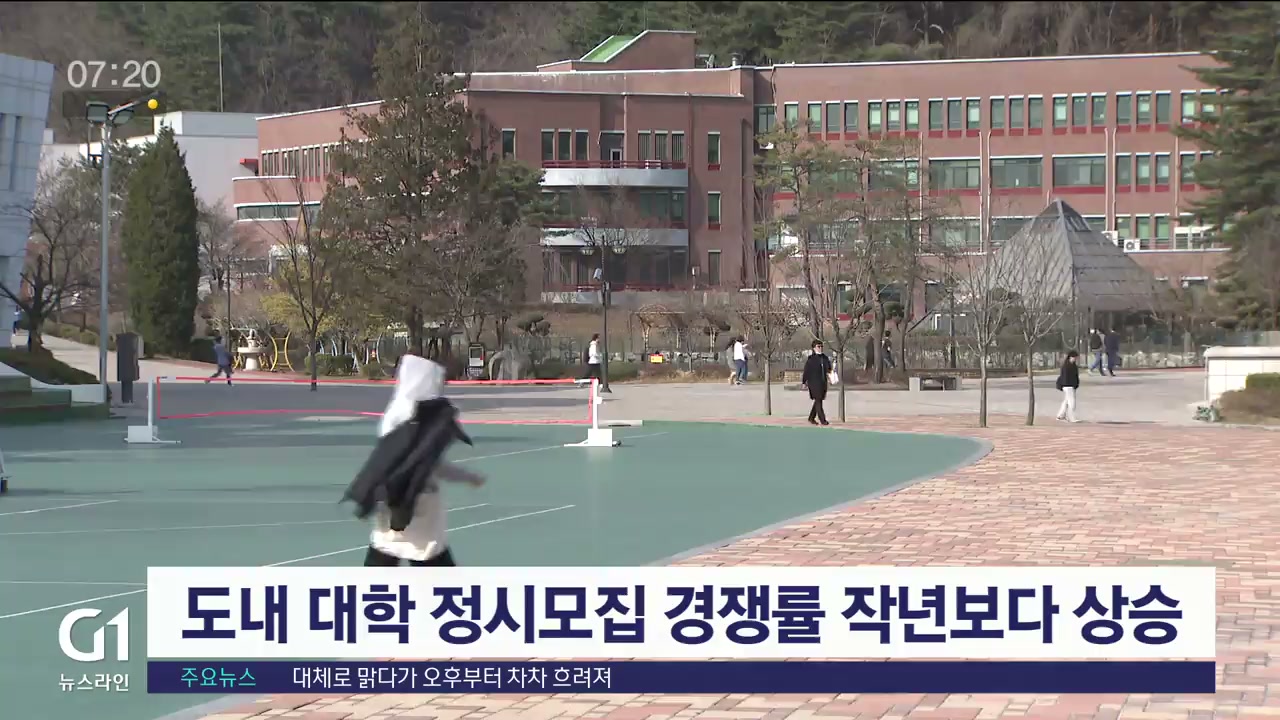 도내 대학들이 최근 2024학년도 정시모집을 마감한 결과 8개 대학 중 6곳의 경쟁률이 지난해보다 상승했습니다.