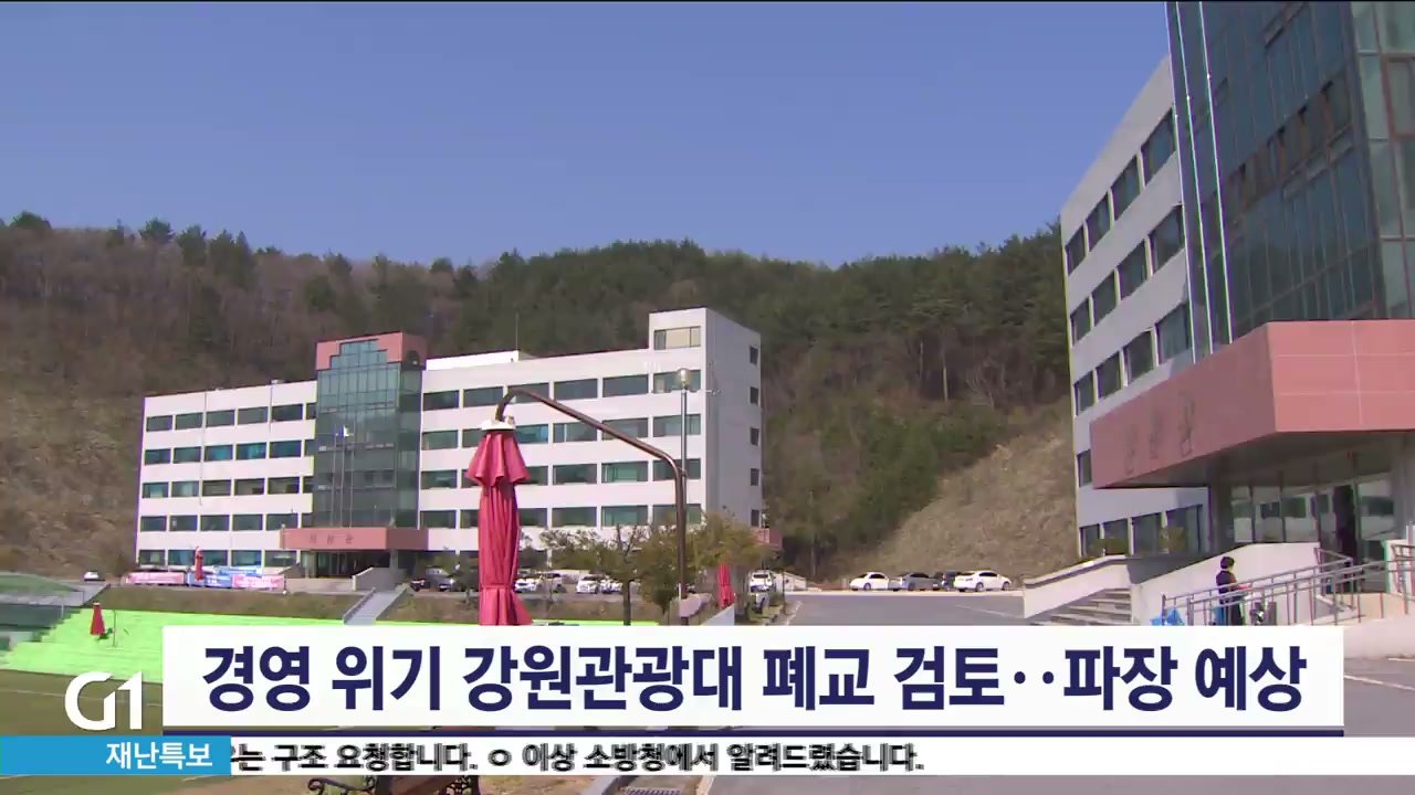 올해 신입생 모집을 중단한 태백 소재 강원관광대학이 폐교를 검토하고 있어 지역 사회에 적지 않은 파장이 예상됩니다.