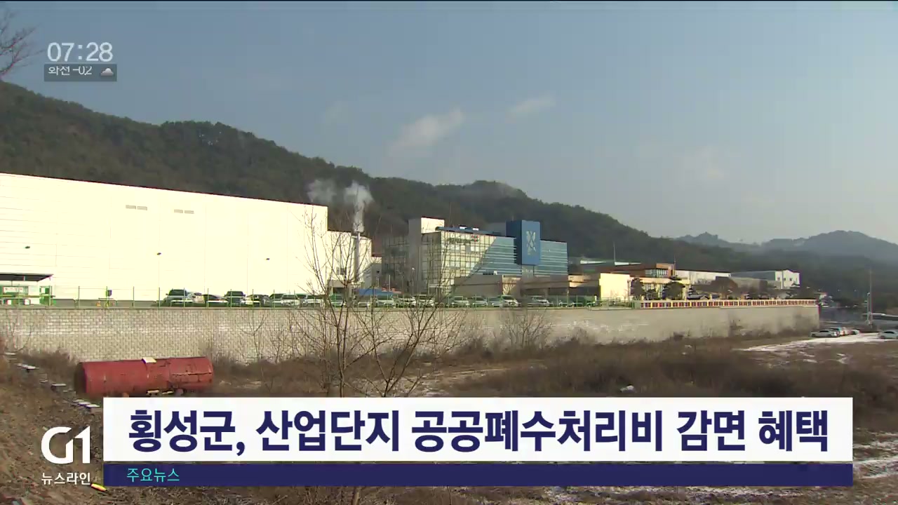 횡성군, 산업단지 공공폐수처리비 감면 혜택