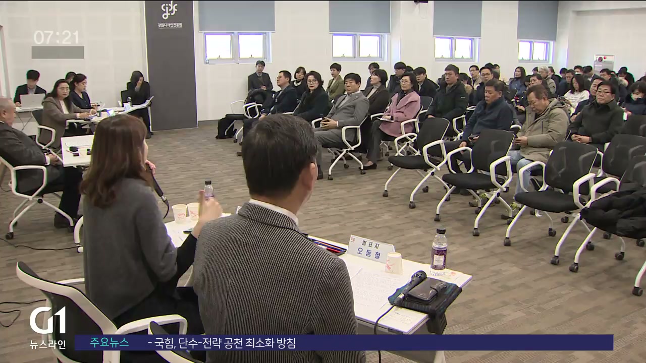 "형식적이었다는 비판 속에 공청회를 마친 강원자치도의회 의정비 심의위원회는 오는 2월 의정활동비 인상안을 확정할 예정입니다. G1뉴스 김이곤입니다."