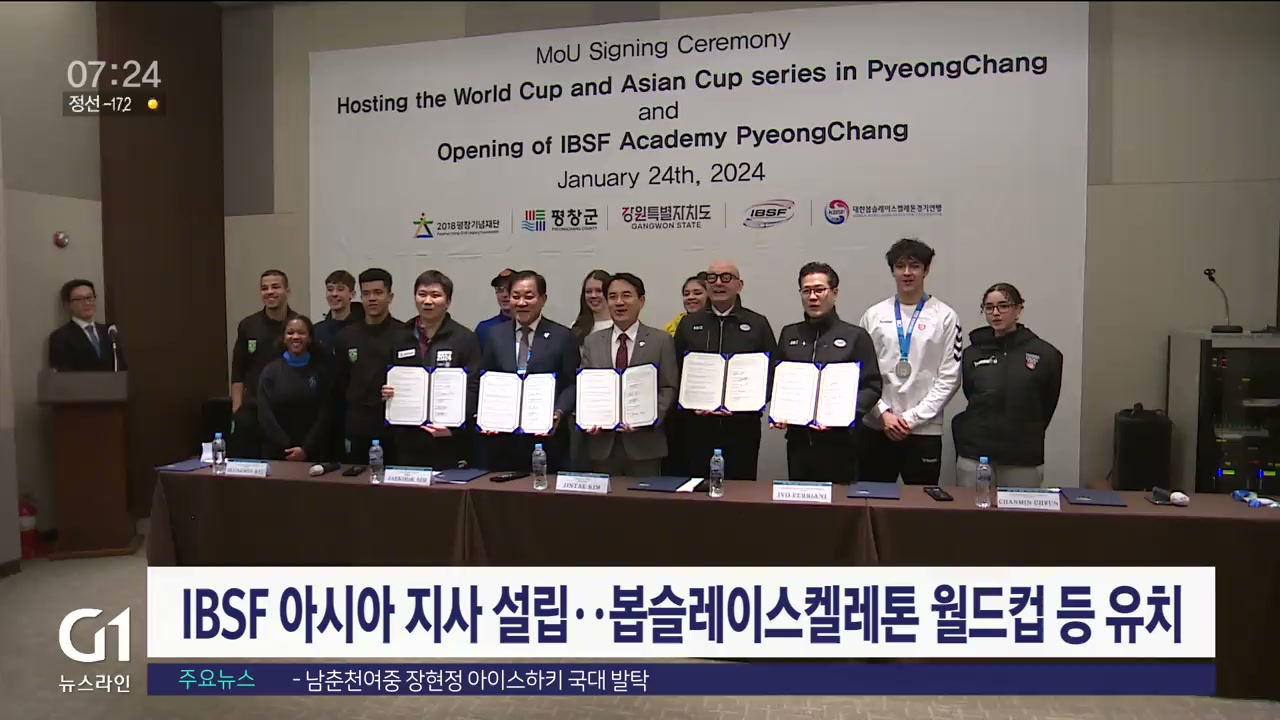 국제봅슬레이스켈레톤연맹인 IBSF와 강원자치도, 평창군과 2018평창기념재단, 대한봅슬레이스켈레톤 경기연맹은 업무협약을 맺고,