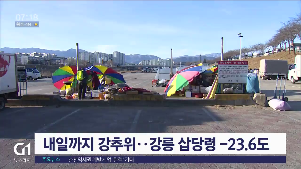 오늘 오전 6시 기준 최저기온은 강릉 삽당령 영하 23.6도, 대관령 영하 21.7도, 홍천 내면 영하 21.1도 등입니다.