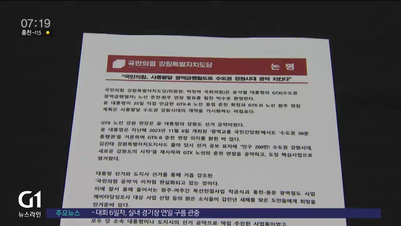 국민의힘 강원특별자치도당은 논평을 내고 윤석열 대통령의 GTX 노선 춘천원주 연장 발표를 환영했습니다.