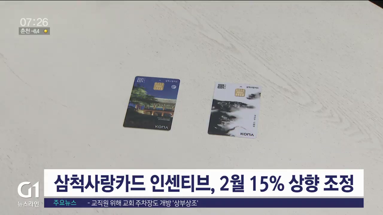 삼척사랑카드 인센티브, 2월 15% 상향 조정
