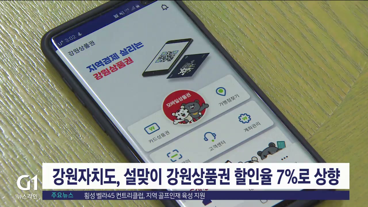 설맞이 강원상품권 할인율 7%로 상향