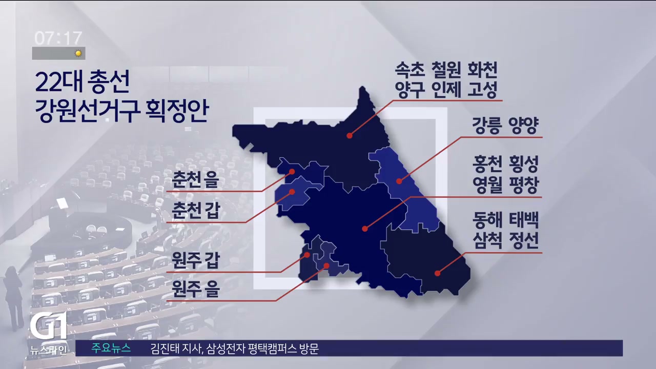 선관위는 인구수만 보고 지도에 줄 긋듯이 획정하고, 정치권은 코 앞의 유불리만 따지는 잘못을 되풀이하고 있습니다. G1뉴스 김도환입니다."