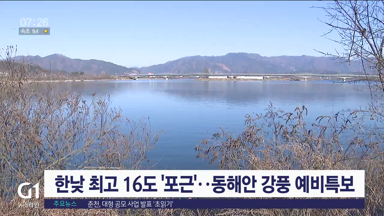 한낮 최고 16도 '포근'..동해안 강풍 예비특보