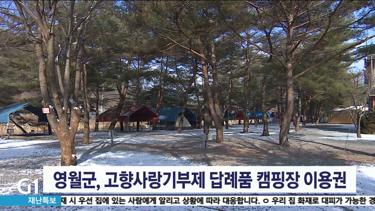 영월군은 방문객들이 많은 캠핑장에 주목하고 지난해 말 11곳의 캠핑장을 고향사랑기부제도 답례품으로 선정했습니다.
