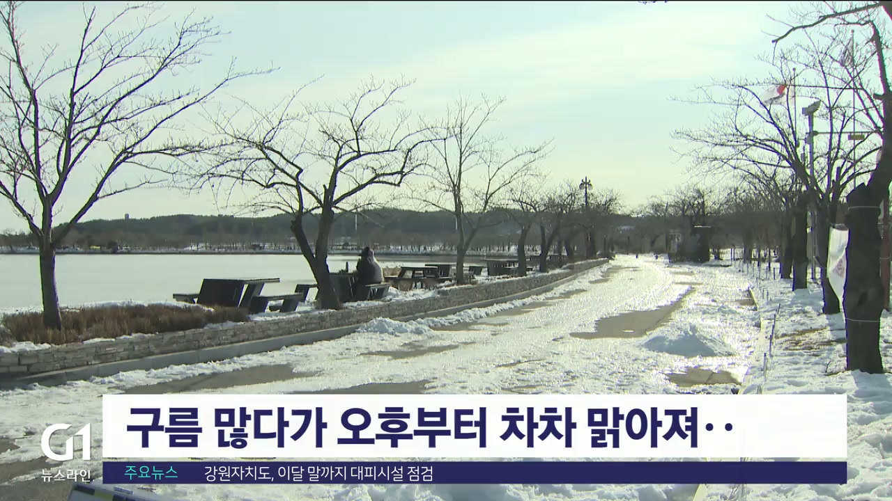 오늘 강원자치도는 구름이 많다가 오후부터 차차 맑아지겠습니다.