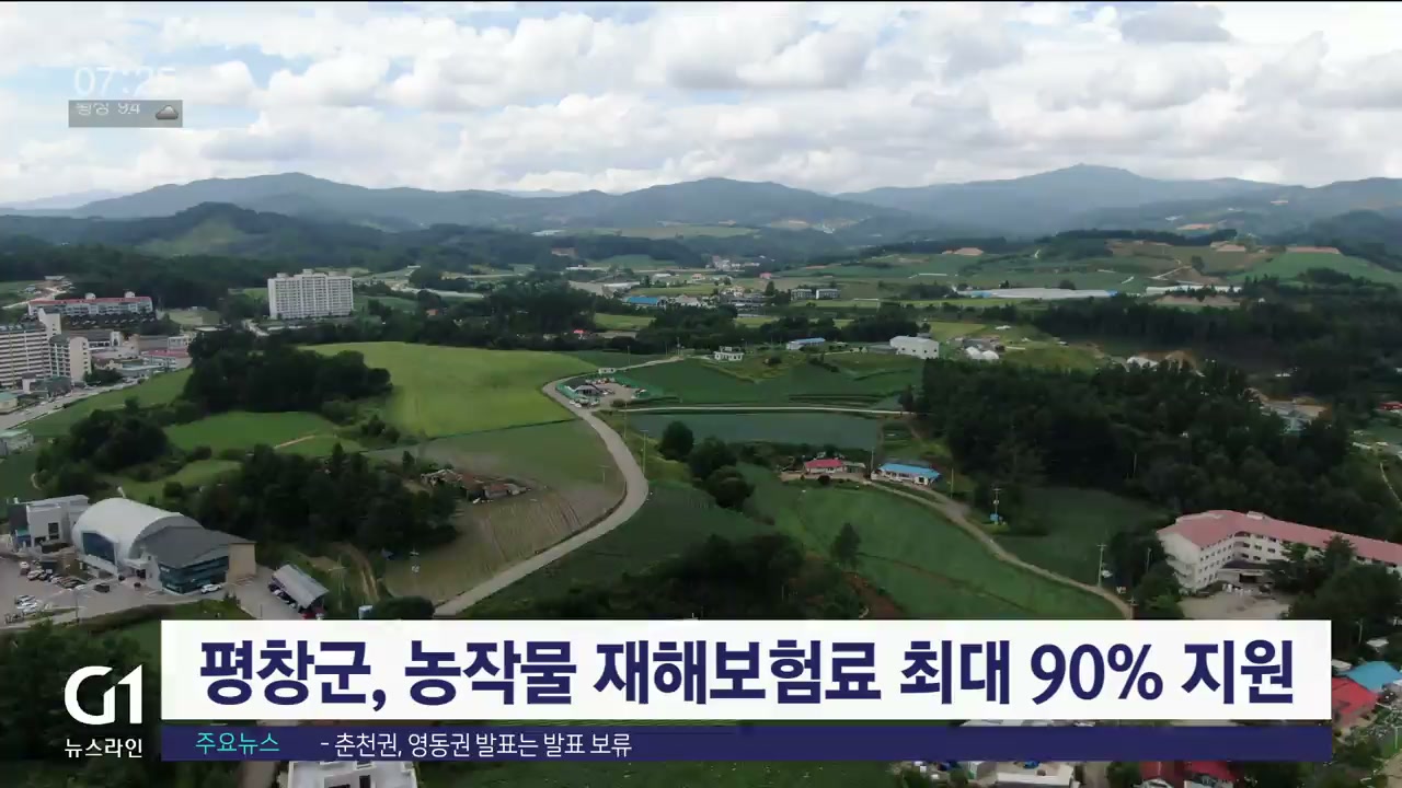 평창군이 집중호우나 태풍 등 자연재해로 농작물 피해를 입은 주민을 위해 재해보험료를 최대 90%까지 지원합니다.