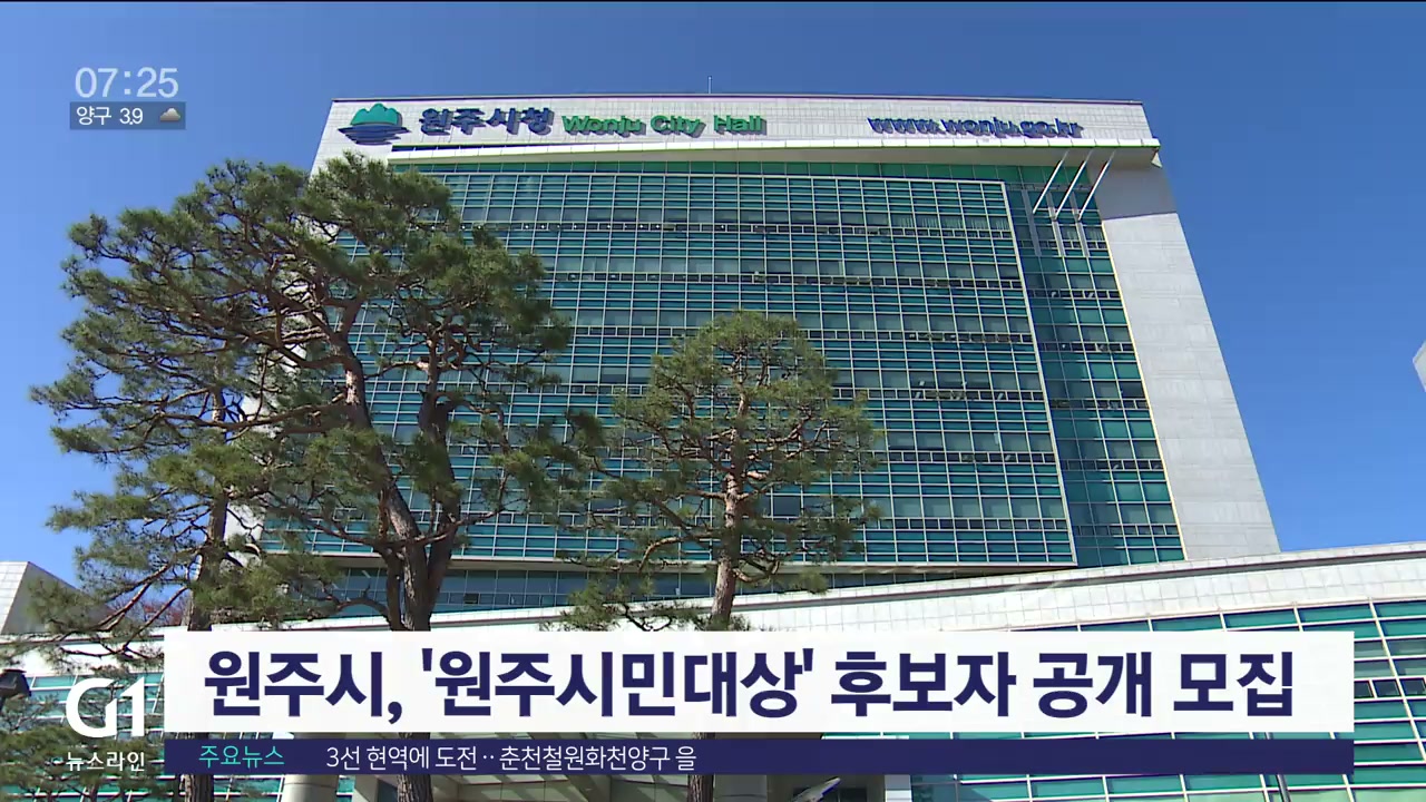 원주시가 오는 26일부터 4월 26일까지 '2024년 원주시민대상' 후보자를 공개 모집합니다.