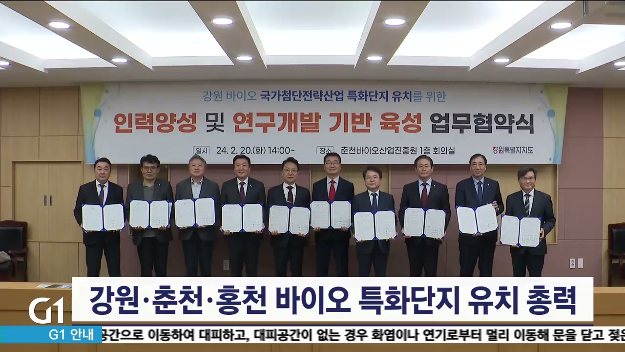 이들 기관은 어제(20일) 춘천바이오산업진흥원에서 업무협약을 맺고, 바이오 지역 인력양성과 연구개발 기반 육성에 나서기로 했습니다.