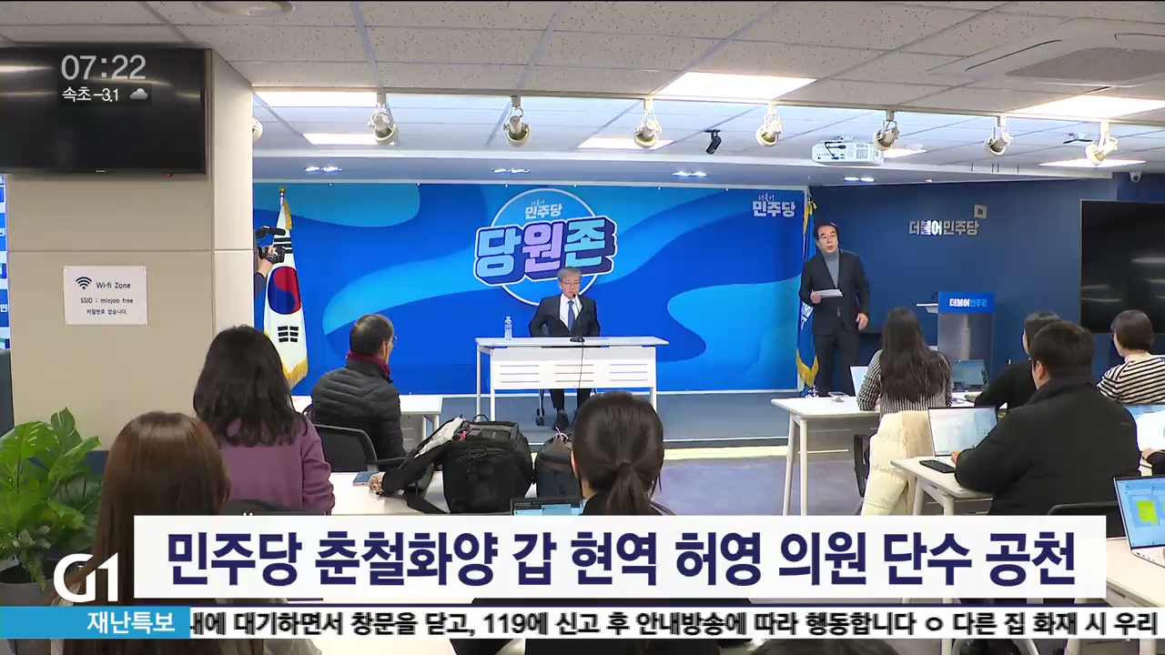 더불어민주당이 춘천-철원-화천-양구 갑 선거구에 현역 허영 의원을 단수 공천했습니다.