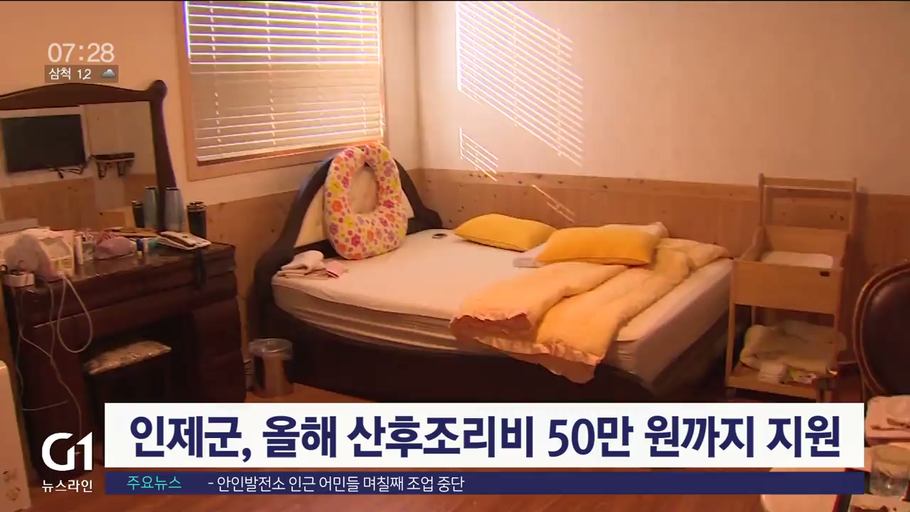 인제군이 올해부터 지역에 거주하는 산모를 대상으로 산후조리비를 최대 50만 원까지 지원합니다.