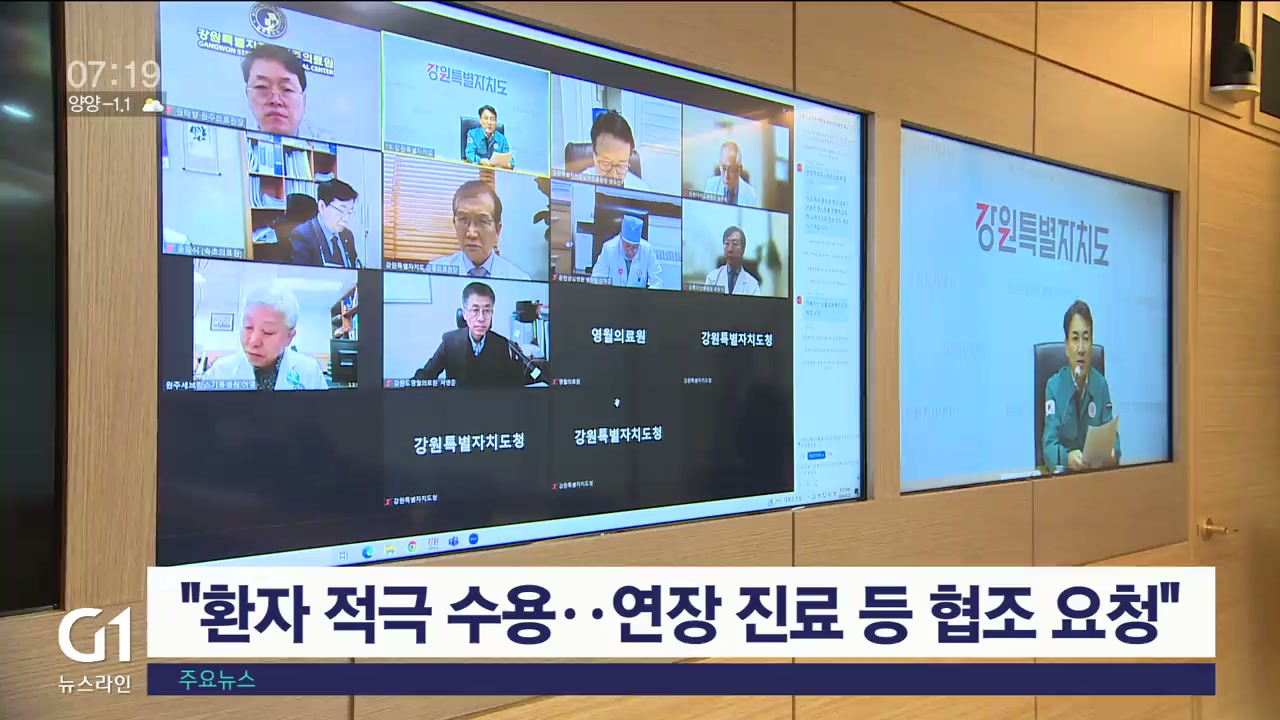 김진태 강원특별자치도지사는 어제(27일) 도내 주요 의료기관과 화상으로 비상진료 대책회의를 가졌습니다.