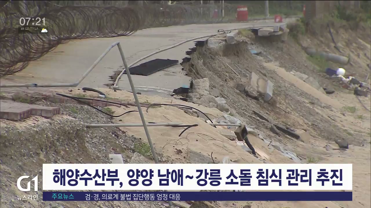 해양수산부는 연안침식관리구역으로 지정된 양양군 남애1리 해변에서 강릉시 소돌해변까지 5.3km 구간을 집중 관리한다고 밝혔습니다.