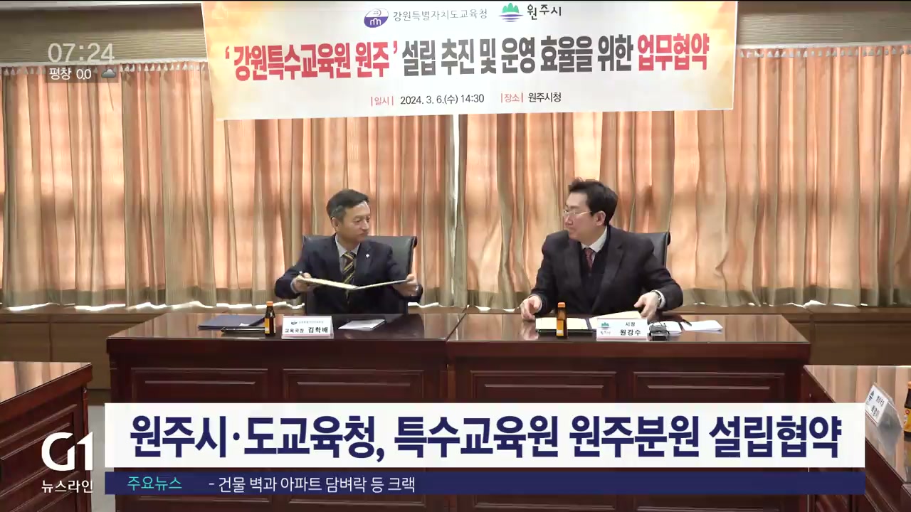 원주시와 강원자치도 교육청이 어제(6일) 원주시청에서 강원특수교육원 원주 분원 설립을 위한 업무협약을 맺었습니다.