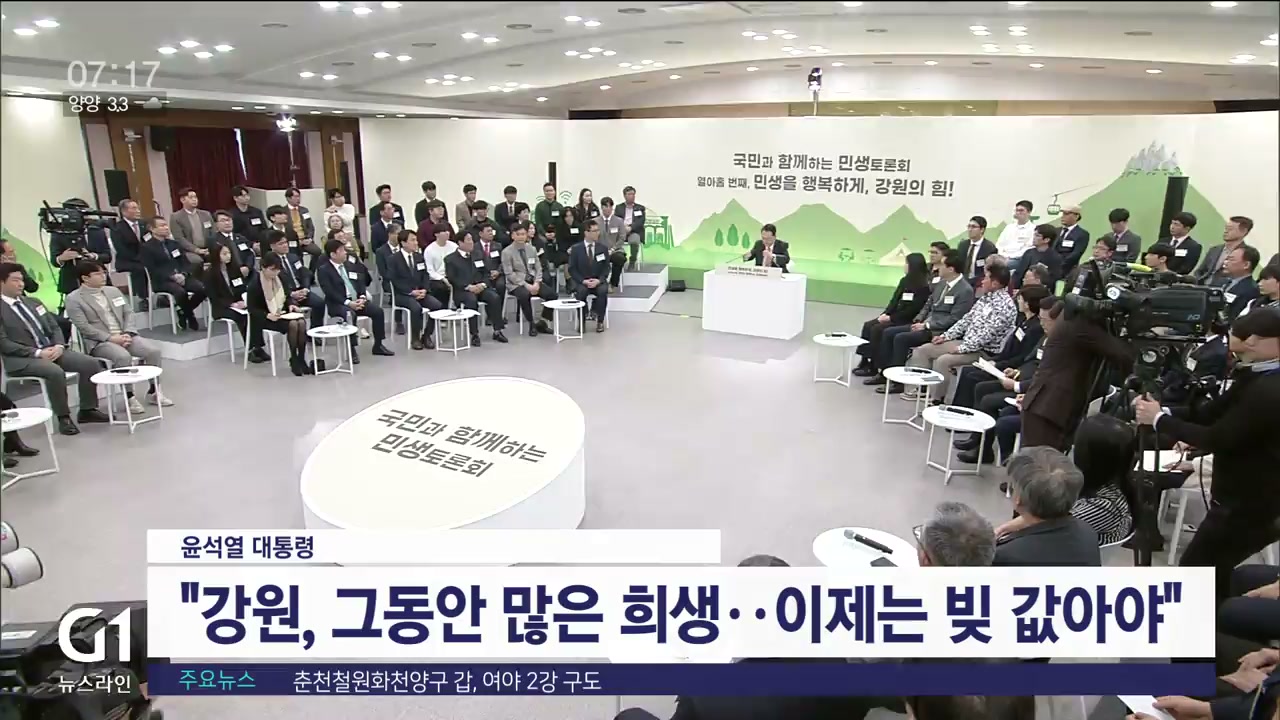 윤 대통령은 "강원은 대한민국을 위해 그동안 헌신하고 희생했다"는 말로 토론회의 말문을 열었습니다.