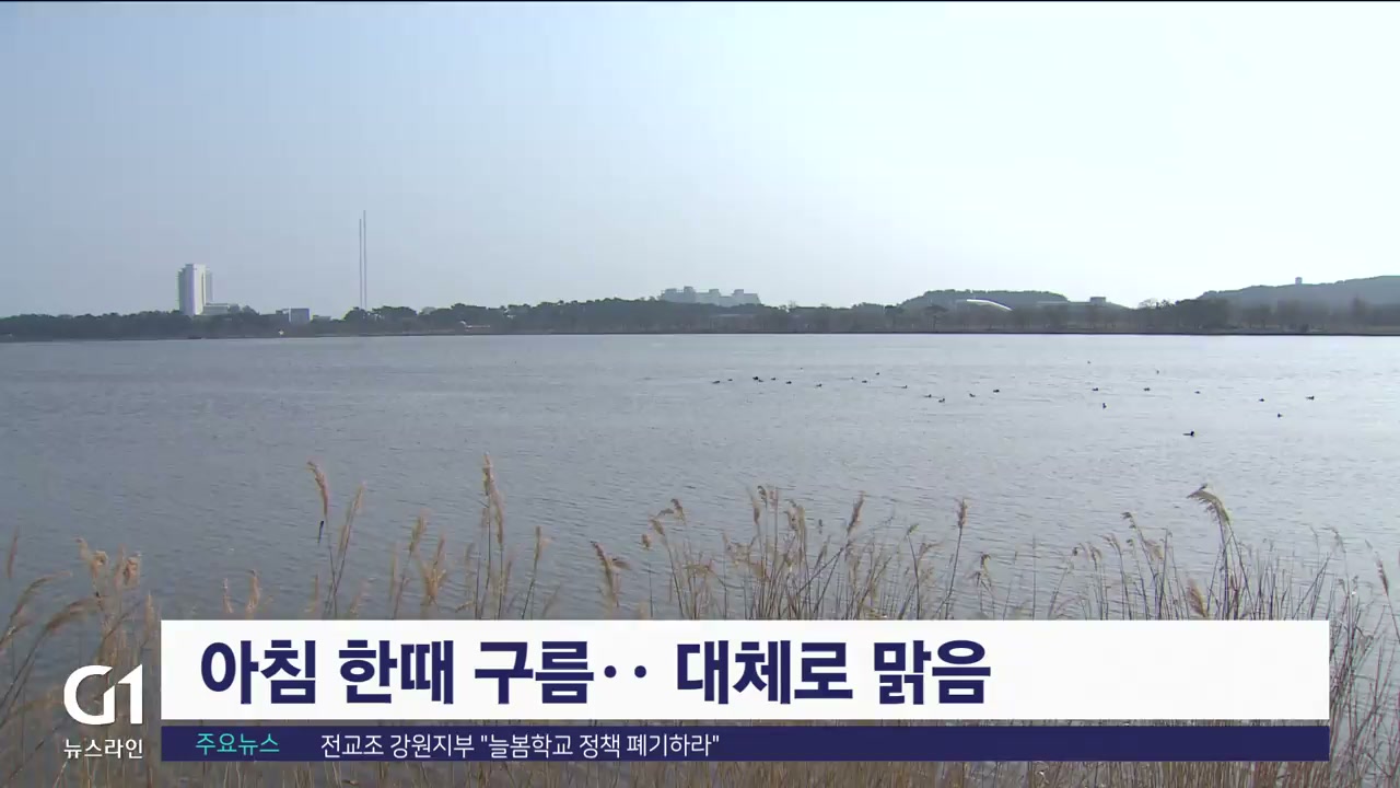 강원자치도는 대체로 맑겠으나 아침 한때 구름이 끼는 곳이 많겠습니다.