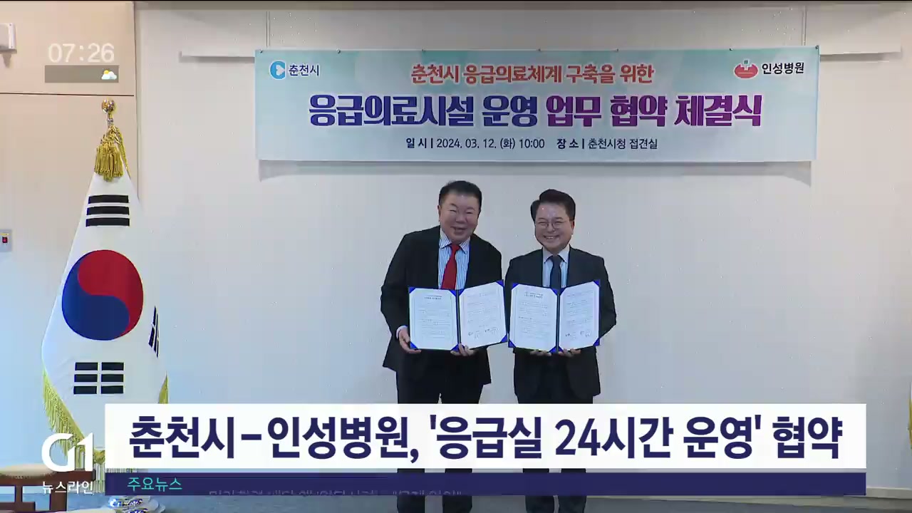 춘천시와 인성병원이 '지역 응급의료 발전 업무협약'을 맺고, 응급의료서비스 제공에 나섭니다.